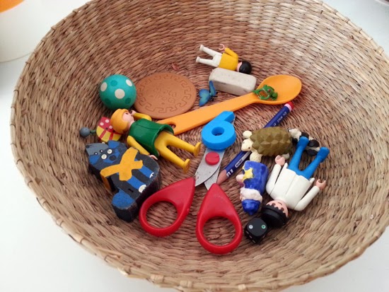 D'altra banda, els mostro un cistellet ple d'objectes per guardar a dins de les caixes.